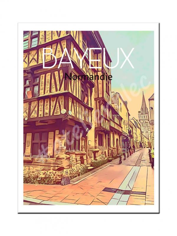 Affiche Bayeux gros plan sur la maison à pan de bois