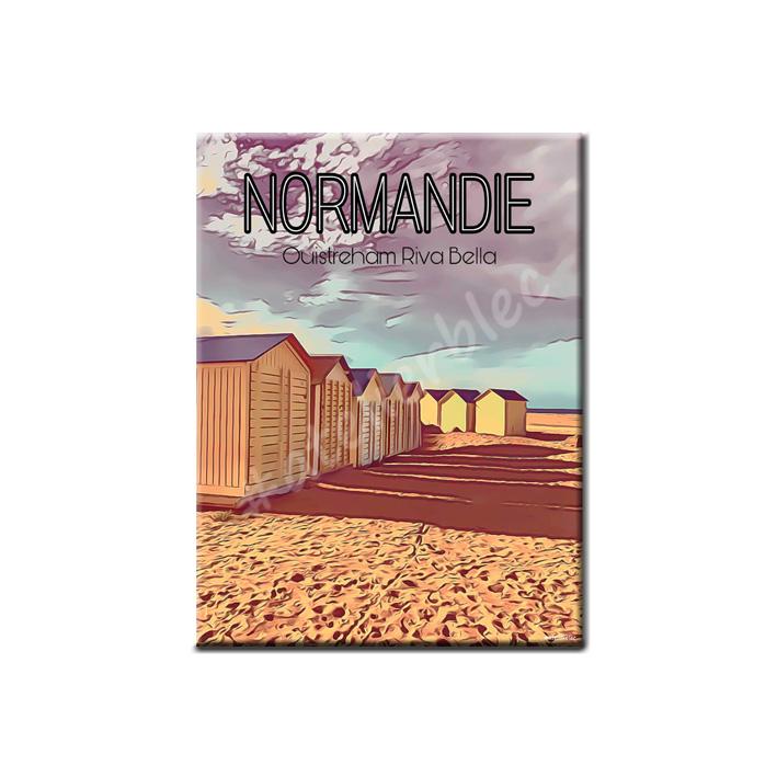 Cette affiche capture la beauté des plages de Ouistreham, avec ses dunes, son port pittoresque et ses cabines de plage . Elle évoque également l'histoire riche de la région, avec des références subtiles à son rôle durant la Seconde Guerre mondiale.