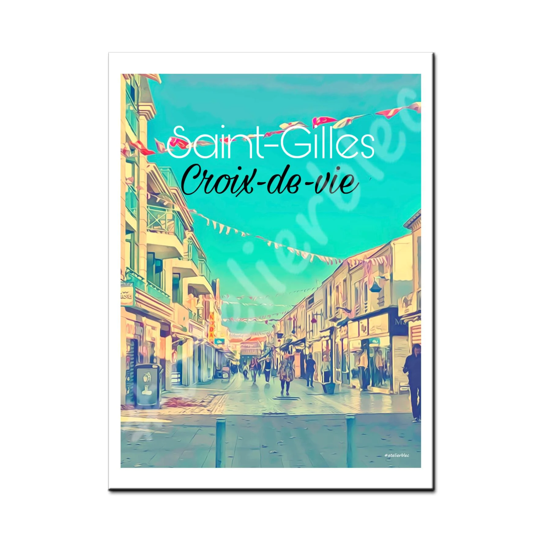 Titre : Affiche Murale de la Rue piétonne du Général de Gaulle à St Gilles Croix de Vie